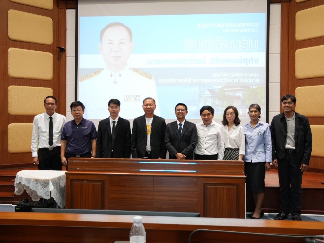 ในการนี้ รองศาสตราจารย์ ดร.ณฐพงศ์ จิตรนิรัตน์ อธิการบดีมหาวิทยาลัยทักษิณ ให้เกียรติกล่าวต้อนรับและร่วมแสดงความยินดีกับนายแพทย์สุวัฒน์ พร้อมทั้งได้กล่าวถึงทิศทางการดำเนินงานด้านการแพทย์และวิทยาการสุขภาพของมหาวิทยาลัย ซึ่งมุ่งเน้นการบูรณาการองค์ความรู้ทางการแพทย์ การพัฒนาศักยภาพบุคลากรทางสุขภาพ และการสร้างเครือข่ายความร่วมมือกับหน่วยบริการทางการแพทย์ในพื้นที่ภาคใต้ เพื่อยกระดับคุณภาพชีวิตของประชาชนอย่างยั่งยืน